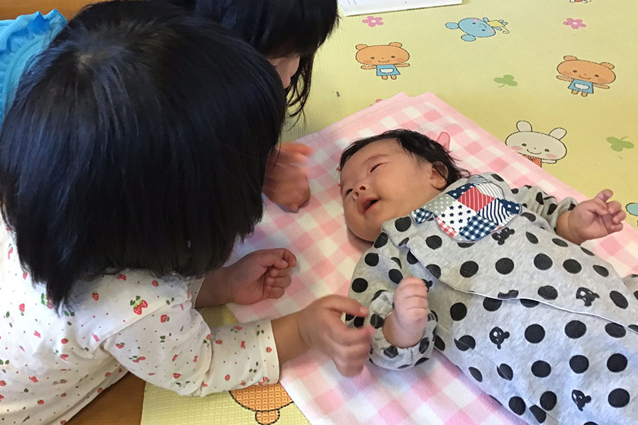 そうやってさまざまな年齢が交わり合って過ごすことで、上の子が自然と下の子ができないことを手伝ってあげたり、優しい言葉をかけてあげたりと、上の子には思いやりの心が育ち、下の子は上の子に憧れるという素敵な関係が育まれています。 -
