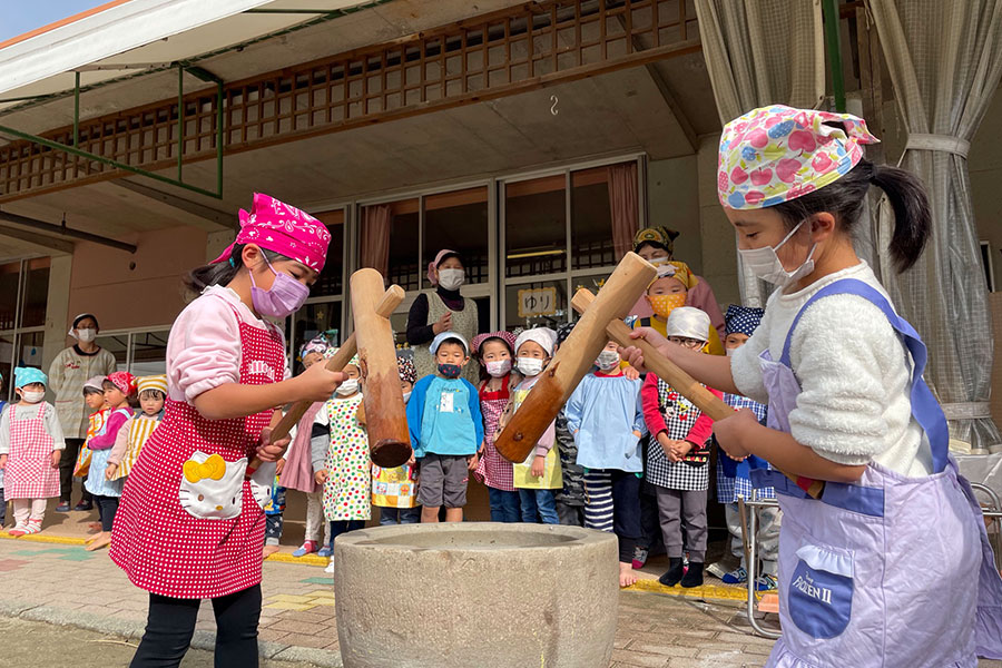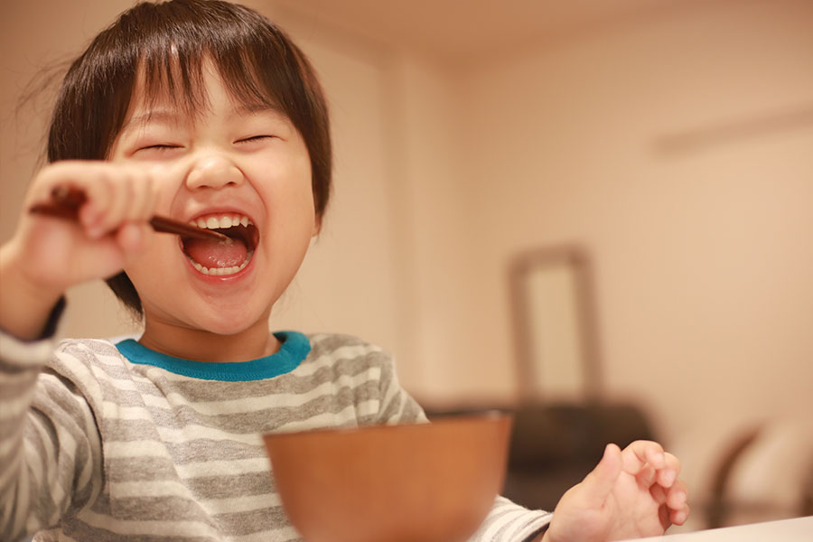 顔を合わせて「おいしいね」と、子どもたちの大好きな時間。 - 午前10時~