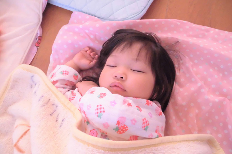 午前中あそび疲れた子どもたち。布団に入るとぐっすりです。